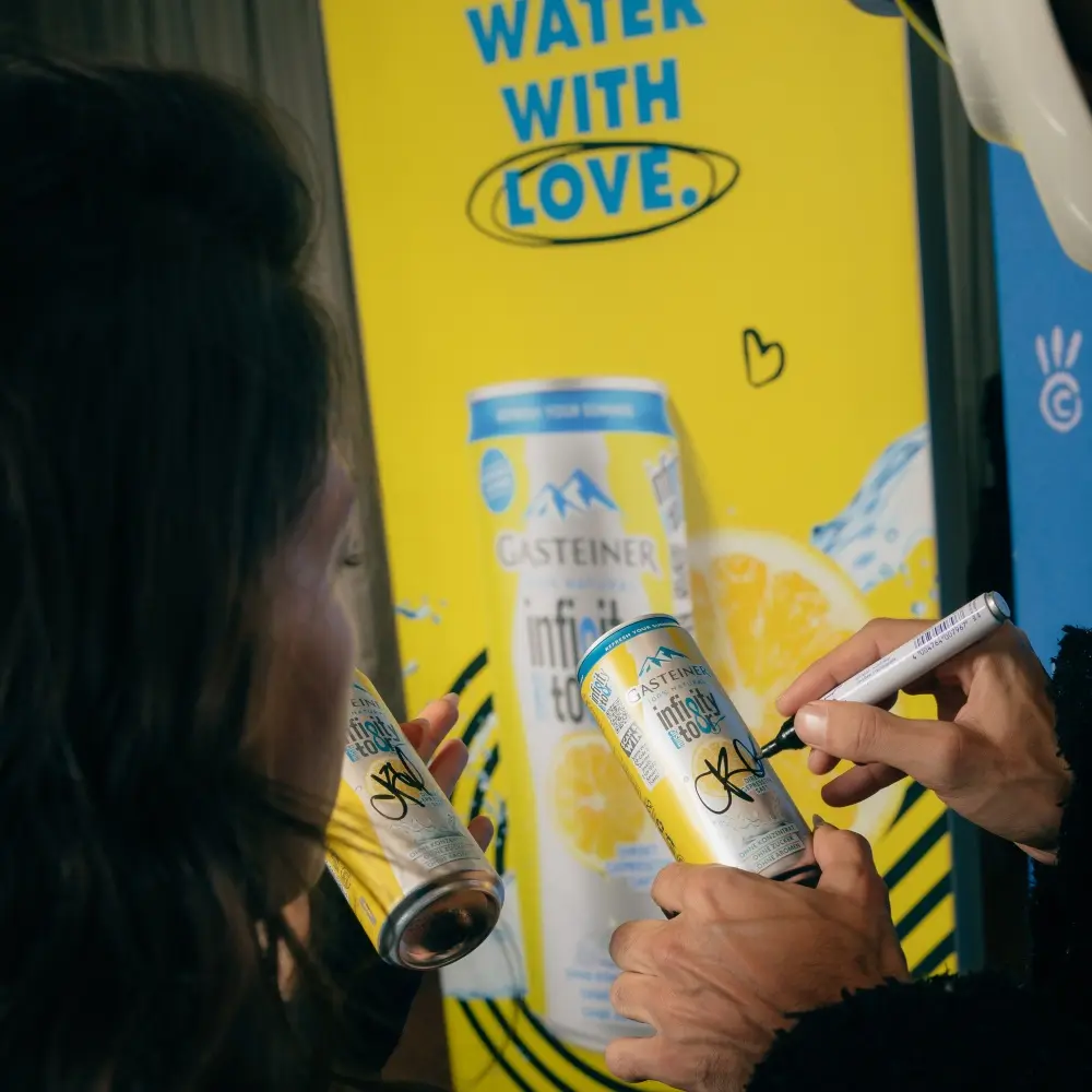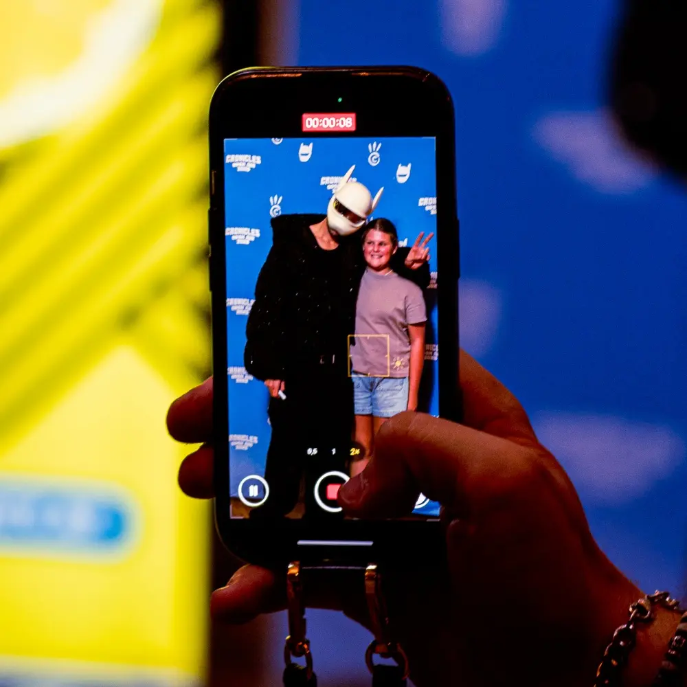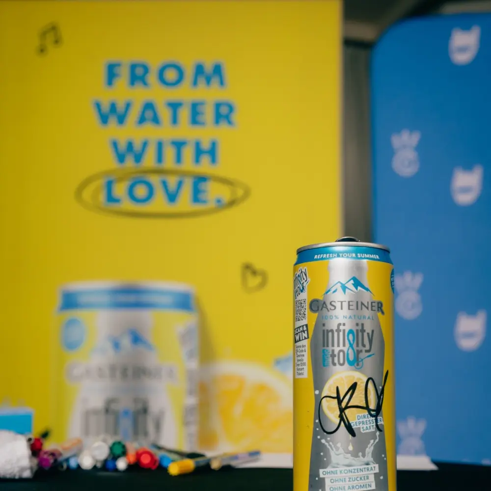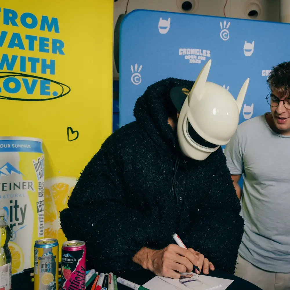 Gasteiner war mit einem echten Highlight dabei: Unser Dosengewinnspiel – normal nur in Österreich verfügbar, aber für diese Gelegenheit extra auf Deutschland ausgeweitet – machte für euch Meet & Greets mit CRO persönlich möglich. Eure Reaktionen waren überwältigend: Es wurde gelacht, geweint, für Fotos posiert, T-Shirts wurden unterschrieben, eigene T-Shirts an Cro verschenkt, und natürlich gab’s für alle erfrischendes Gasteiner!
